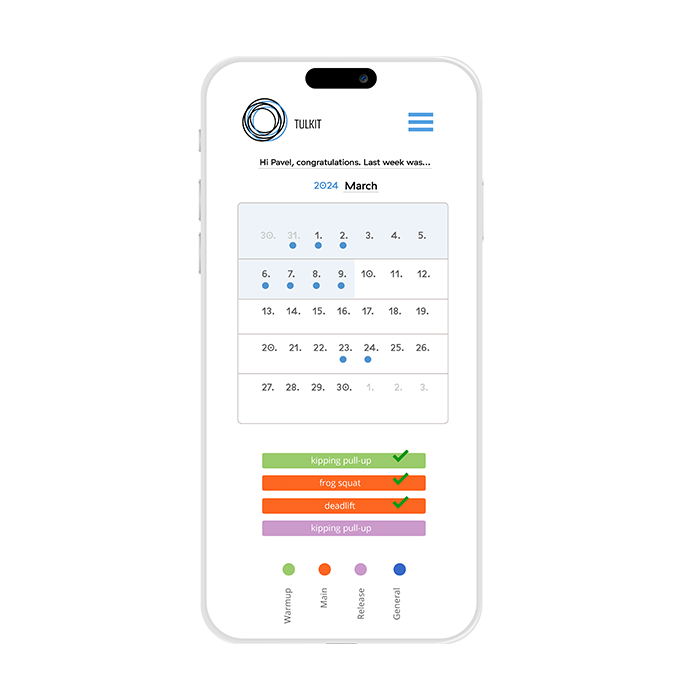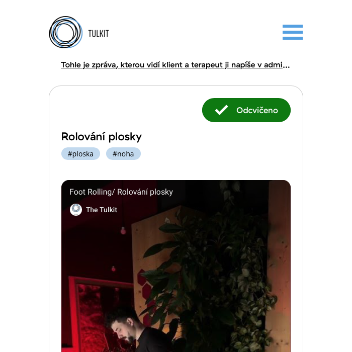 Ústřední motivem, celého klientského prostředí je přehledný kalendář, kde pacient vidí, všechny své naplánované aktivity a rehabilitační plán.